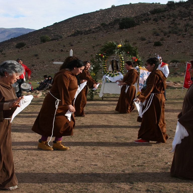 Bailarinas, baile religioso danzante San Francisco de Asís, del pueblo rural de Arboleda Grande, comuna de Salamanca, Chile
