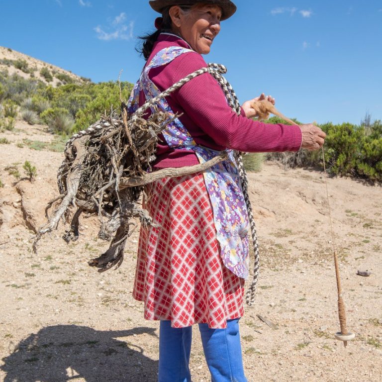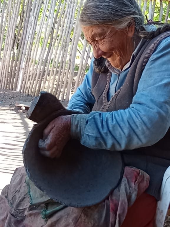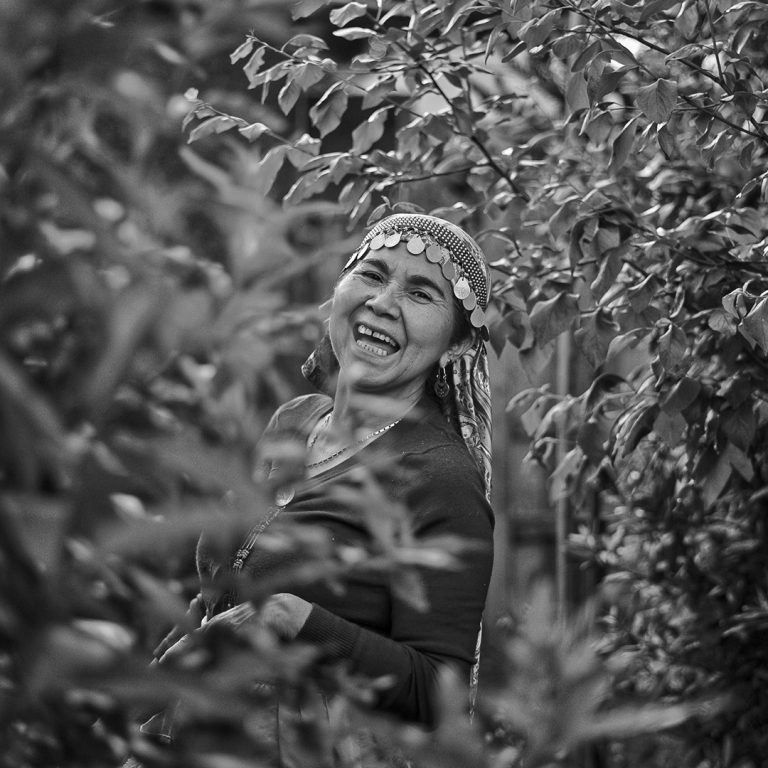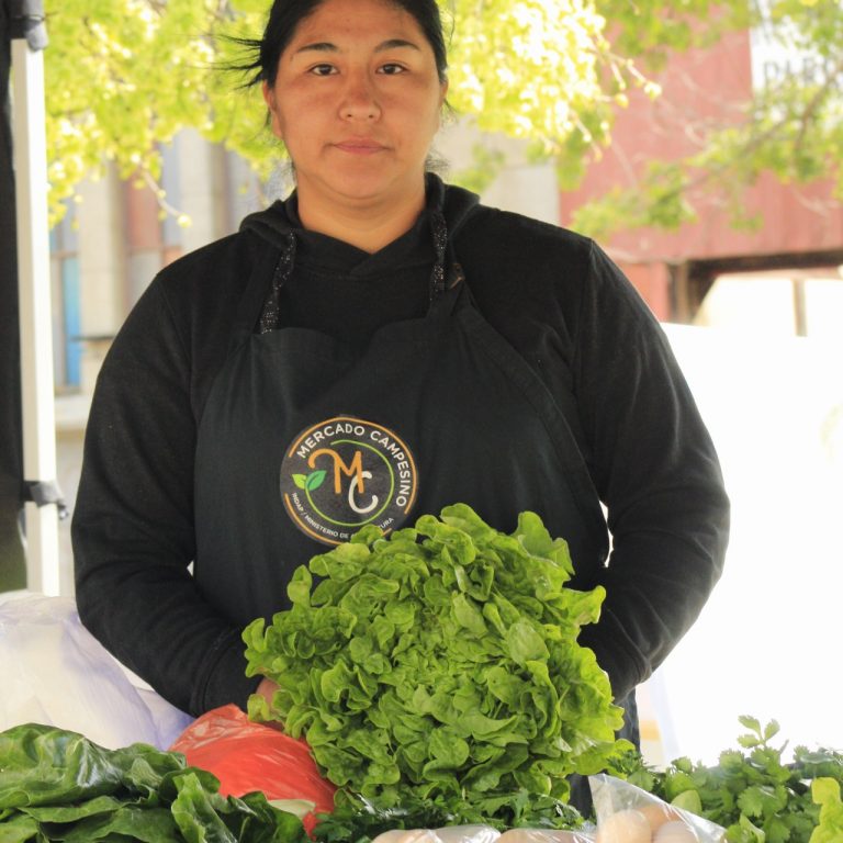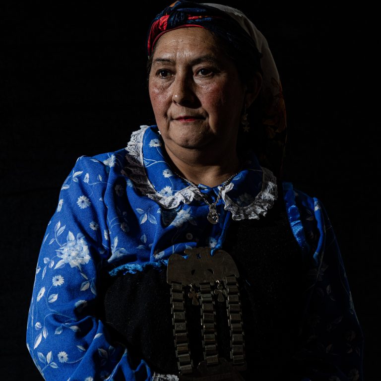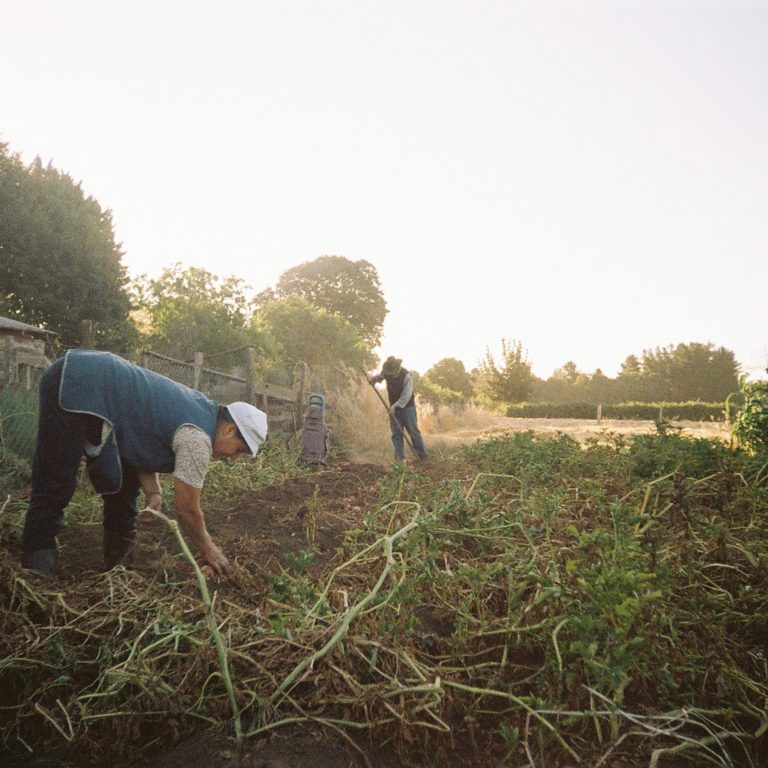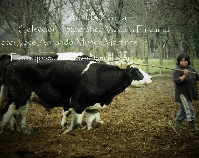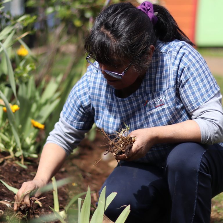 Mujer mapuche en su huerto