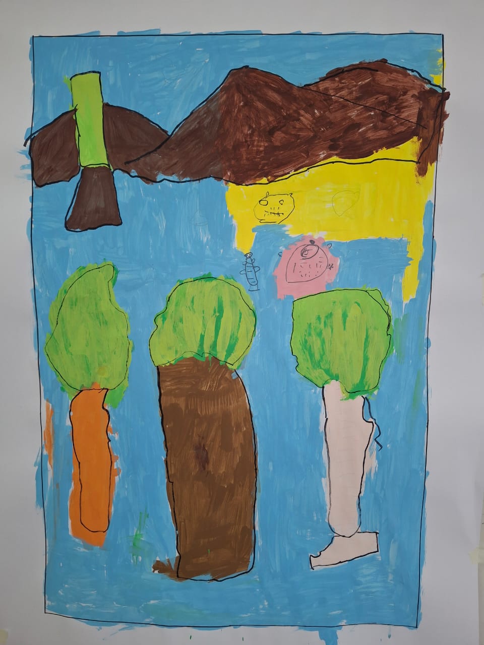 La obra expresa un momento fugaz y onírico en un bosque de nuestro país, donde el artista plasma su visión del mundo con sus formas personales subrealistas.