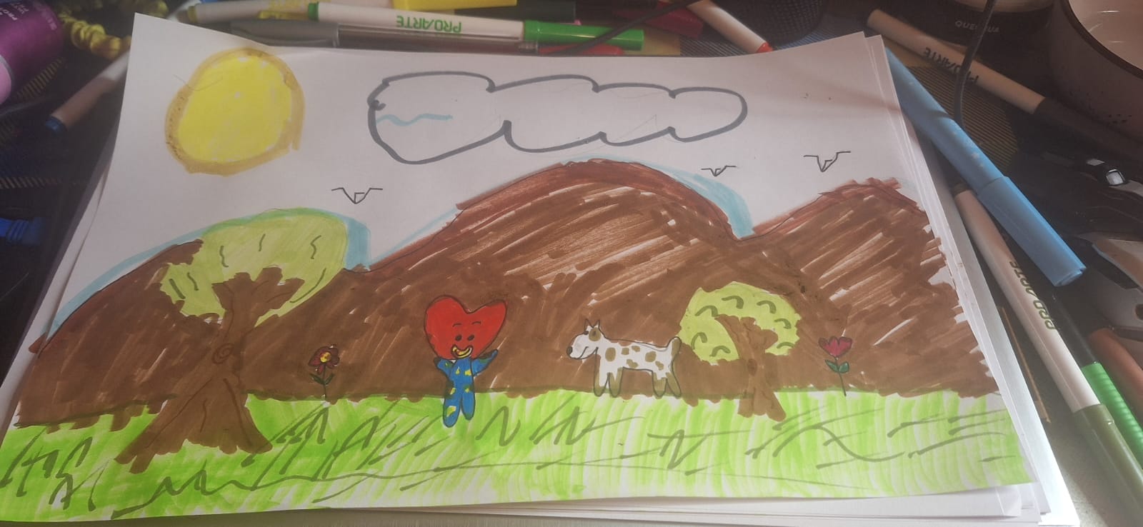 se trata de que tata de bt21 ve muchas montañas, arboles, flores y animales salvajes, y un perro quiltro.