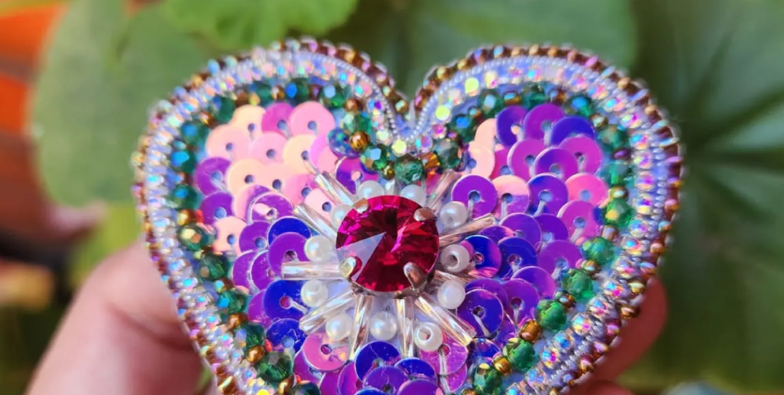 Este taller invita a explorar la creatividad, la expresión personal y el valor del trabajo hecho a mano, a través del diseño de prendedores bordados con pedrería.